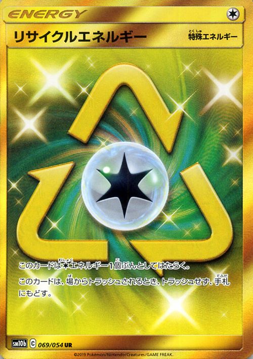 収録:ポケモンカードゲーム サン&ムーン 強化拡張パック 「スカイレジェンド」 ■カード名:リサイクルエネルギー ■タイプ:無 ■分類:基本エネルギー ●このカードは【無】エネルギー1個ぶんとしてはたらく。